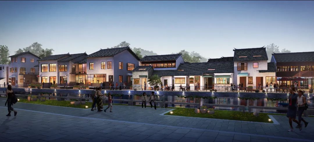 整体风貌展现“白墙灰瓦、林水相依”的江南水乡特色