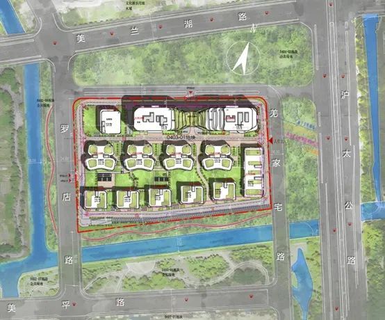 天瑞金项目地块东至羌家宅路、北至美兰湖路、西至罗店路、南至美平路,坐落于罗店镇镇政府西侧,毗邻地铁7号线罗南新村站,占地面积30491.40㎡,容积率2.5,为平台东西两块科研设计用地中的东地块。