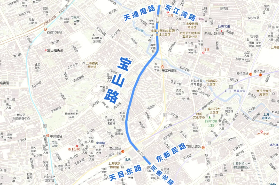 位于虹口区,南起天潼路,北至崇明路。
