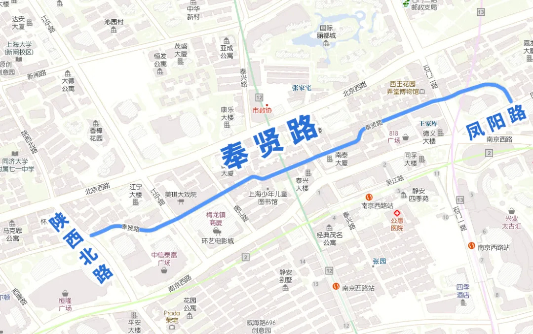 位于静安区,东起凤阳路,西至陕西北路。