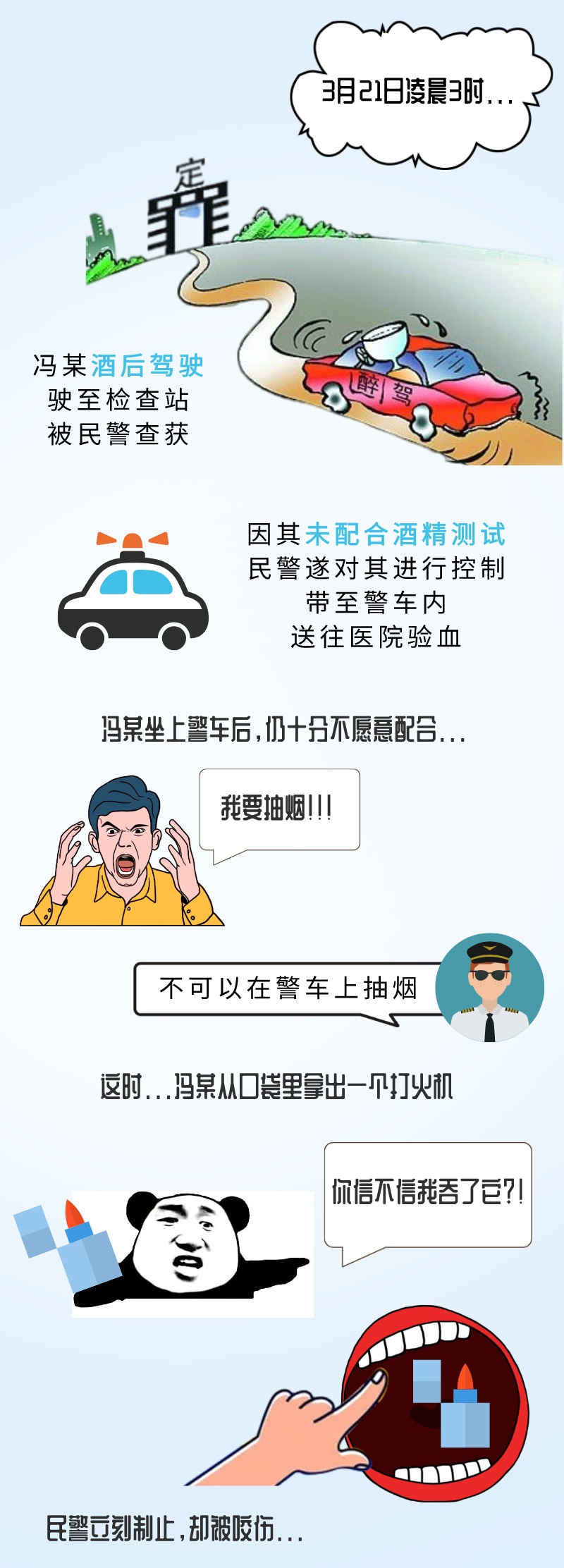 嘉定区检察院认为,被告人冯某违反道路交通安全管理规定,在道路上醉酒驾驶机动车,在民警对其依法执行职务过程中实施暴力袭击行为,其行为已触犯《中华人民共和国刑法》,构成危险驾驶罪、袭警罪。