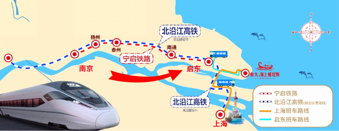 目前,轨道交通沪崇线已开始建设,这条线路从9号线金吉路站出发,向北经长兴岛横跨长江,在崇明岛陈家镇登陆,至裕安站结束。而崇明裕安到启东圆陀角,直线距离仅有10公里。有业内人士分析指出,随着轨道上的长三角进一步高质量发展,“沪通第一站”的启东圆陀角文旅板块将向着“世界级”目标加速迈进。