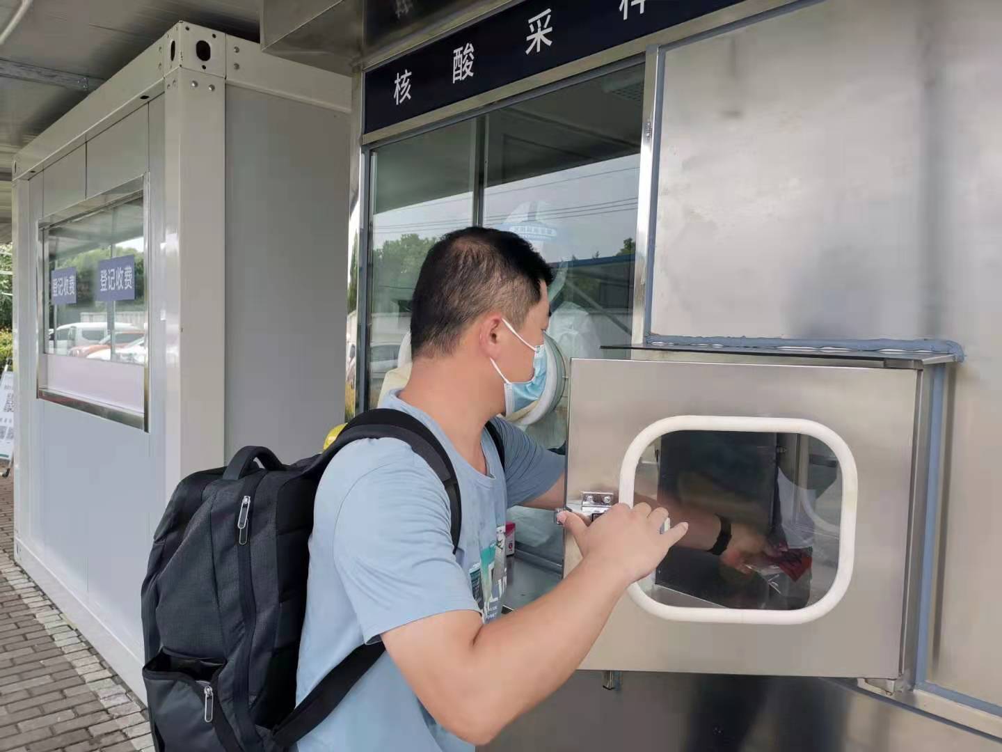 在这里做咽拭子和鼻拭子取样,医生与前来采样的人员完全隔离,同时也隔绝了采样亭外部的空气进入舱体内部,进而有效保护了医护人员的安全,避免其因采样工作而受到感染。在保证安全的同时,医护人员操作灵活,节省了检测时间。
