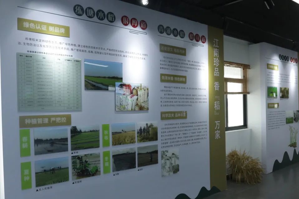 走进内部,环顾四周,包含有“千年古镇 水中人参”“‘蟹’逅徐练 相伴振兴”“江南珍品 香‘稻’万家”和农村老物件这四大展示区域,以图文和实物相结合的方式,让纷至沓来的四方宾客,在此进一步了解“水中人参”——练塘茭白、水稻(徐练、练塘、青浦)、中华绒螯蟹“江海21”的“前世今生”,唤醒记忆中的乡愁。