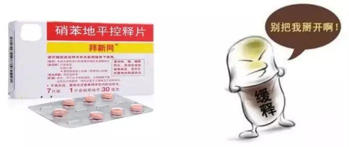 有些药品由于制作工艺和作用机理的不同,只能整片吞服,掰开反而影响药效,如硝苯地平控释片。