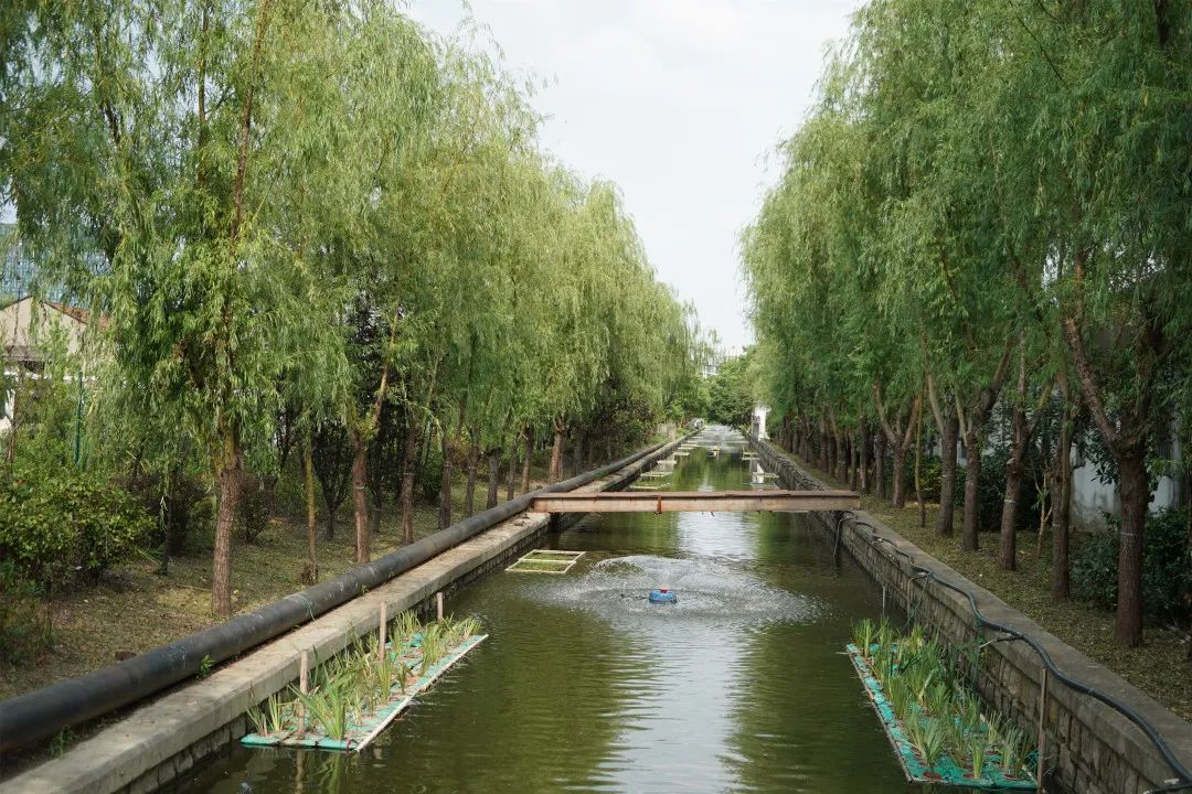 近年来,江桥镇对黑臭河道进行整治,高潮河每一年都在变得更清更美。前两年是挖淤泥,在岸边种绿化,今年又在河道新栽种了水生植物、安装了曝气装置,进一步提升了水质。水质好了,景色美了,河里鱼虾多了,来岸边散步的人也多了。