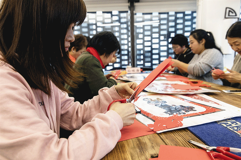 枫林街道以非遗项目“上海剪纸”为核心,以众多剪纸艺术大师(奚小琴、李守白、孙继海等非遗传承人)为引领,积极促进民间文艺融入社会、融入民众,开展社区“巧手坊”、寒暑假剪纸主题班、“枫林杯”剪纸艺术竞赛等一系列剪纸文化活动。