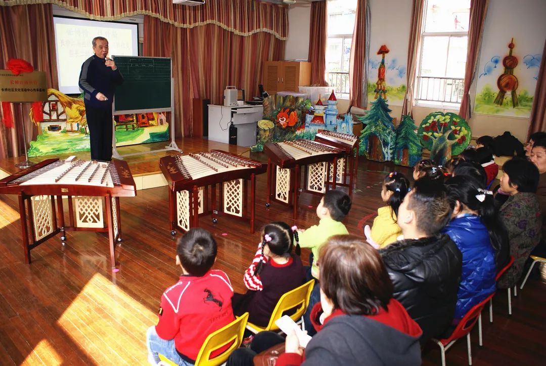长桥申韵丝竹乐团资深艺人定期向传承班青少年传授技艺,组织孩子们到训练基地与丝竹乐队一起排练,形成设施完备覆盖面广的基层文化阵地和网络。
