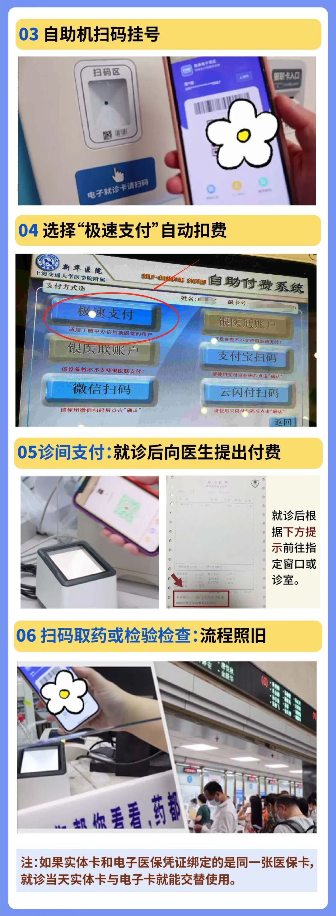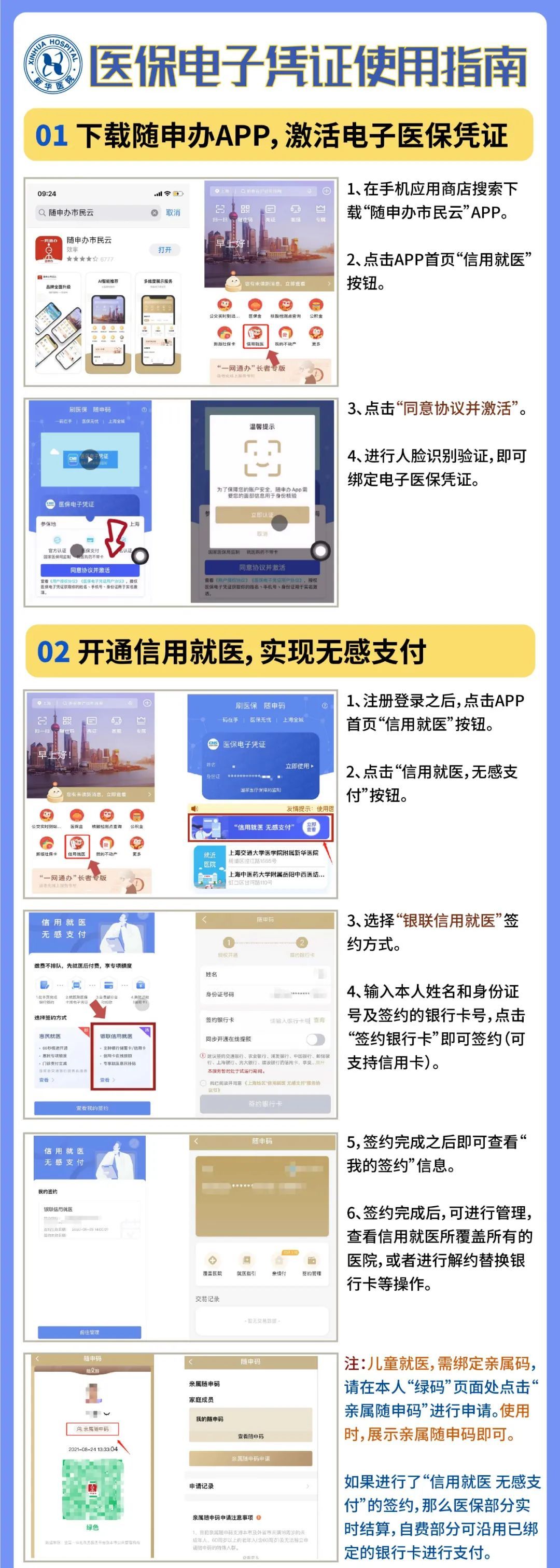 不仅仅如此,如果您愿意在随申办APP“信用就医”里,签约绑定一张信用卡或银行卡,那么,在新华医院各医生诊室里,就能直接把钱付掉了。(他们还给这件事情起了个名字,叫医保电子凭证的信用就医!)