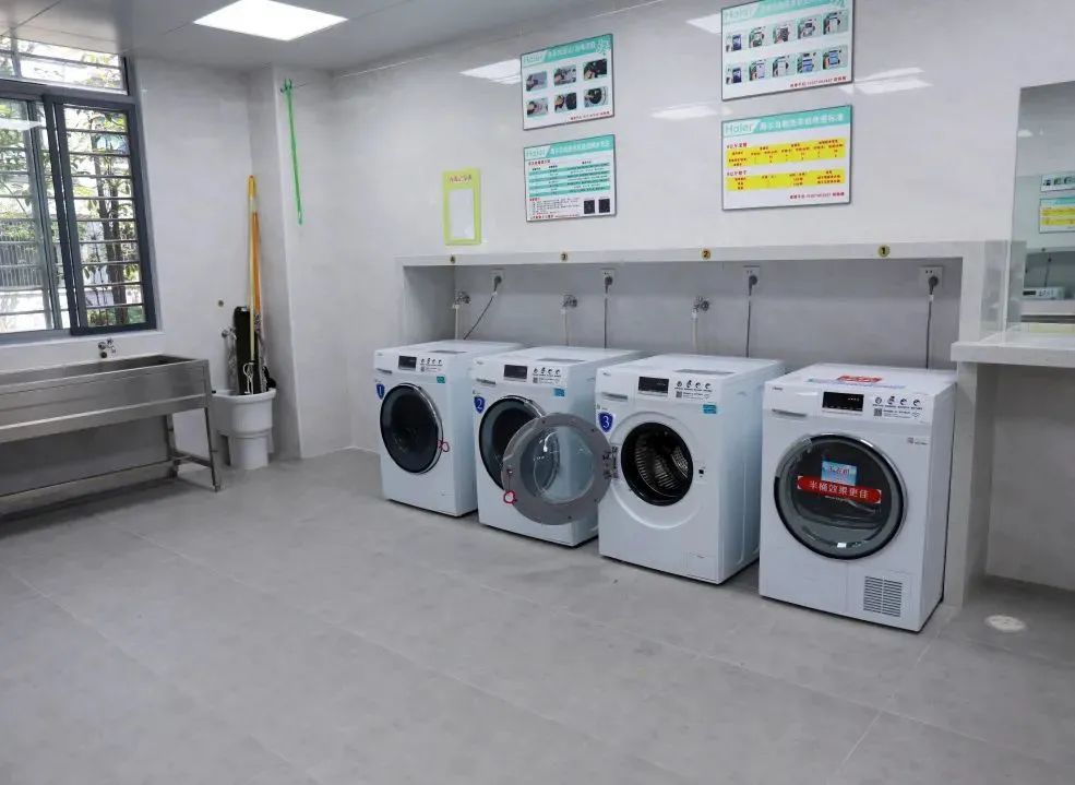 寝室楼里有洗衣房、淋浴房、卫生间等基本生活用房,近几年我们对楼宇盥洗室的配置也进行了更新,大家要齐心协力方能维护它的美好!