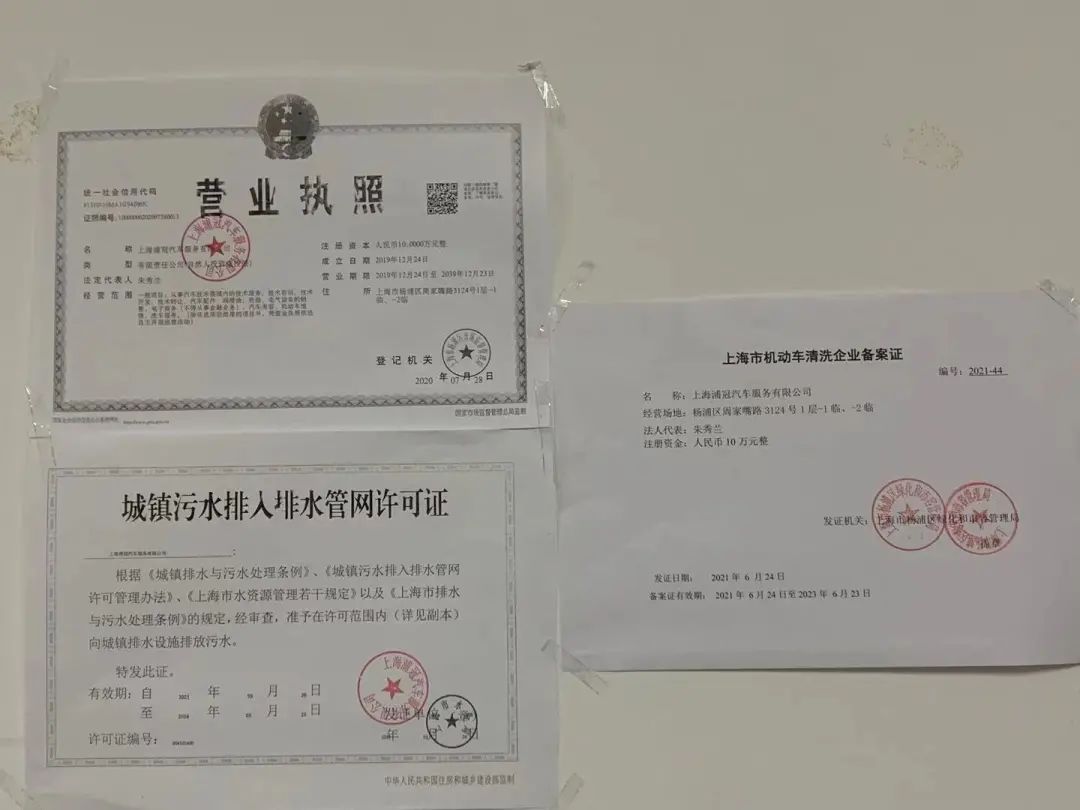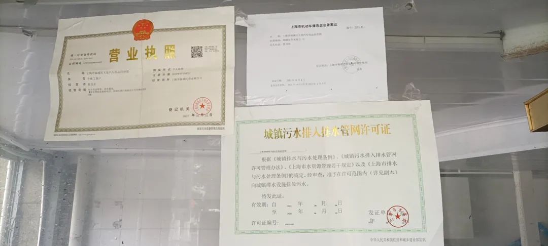 后续跟进:区管理部门引导“浦冠”提交《建筑工程施工许可证》、《建筑工程竣工验收备案证书》、《建筑工程消防验收意见书》和《地块开发情况说明》等“场地经营许可证明”相关补充证明材料,出具属地派出所调查材料《编订门弄牌号通知书》,提供转租合同,理清租赁关系。“浦冠”于3月26日和6月24日先后取得《污水排入排水管网许可证》和《机动车清洗企业备案证》,“三证”齐全整改销项。