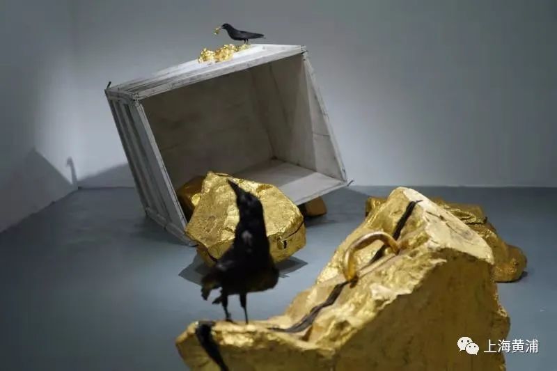 沈也 点石成金 中国漆、金箔、木箱、鸟标本 尺寸可变 2014