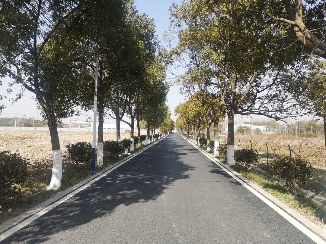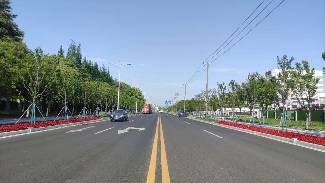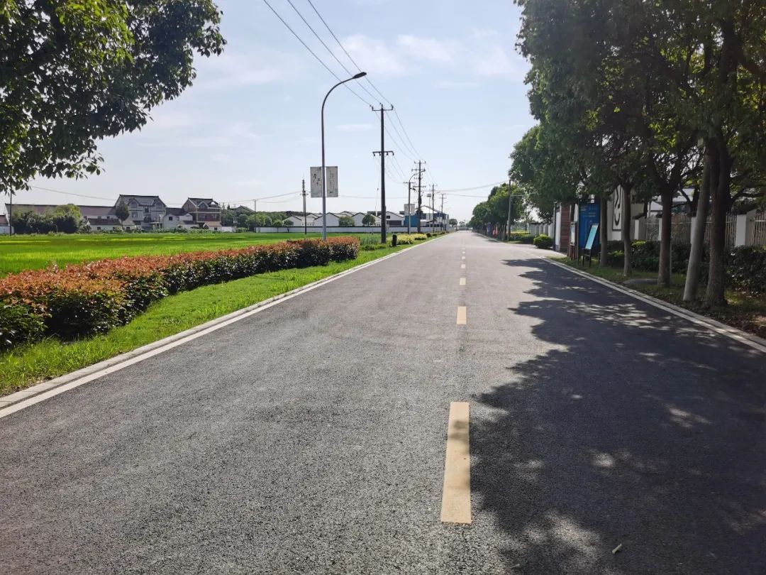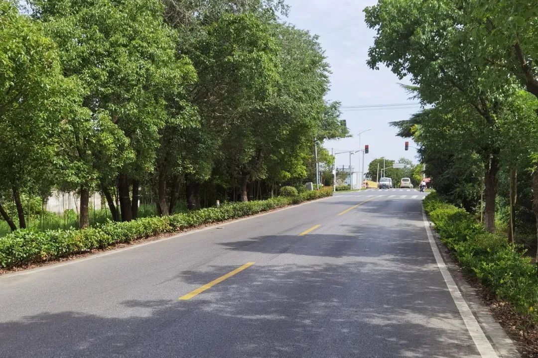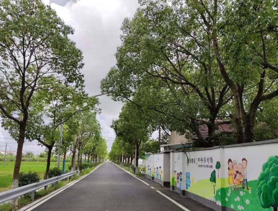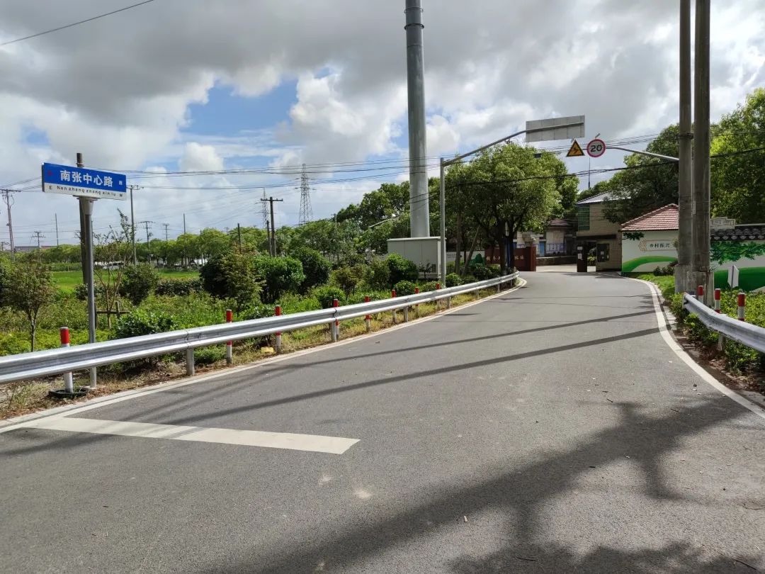 南张中心路是连接金钱公路到奉柘公路的重要道路,车行道宽度为4.5米,经过“四好农村路”提档升级后,道路标志标线标牌、路灯等设施配备齐全。道路两侧布置了三角枫,墙体做了“四好农村路”宣传版面,交叉口处布置了绿化景点,提升了周边老百姓的出行舒适度。