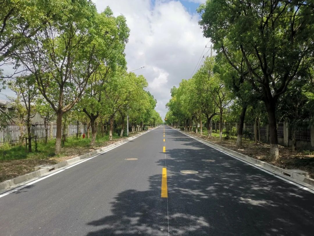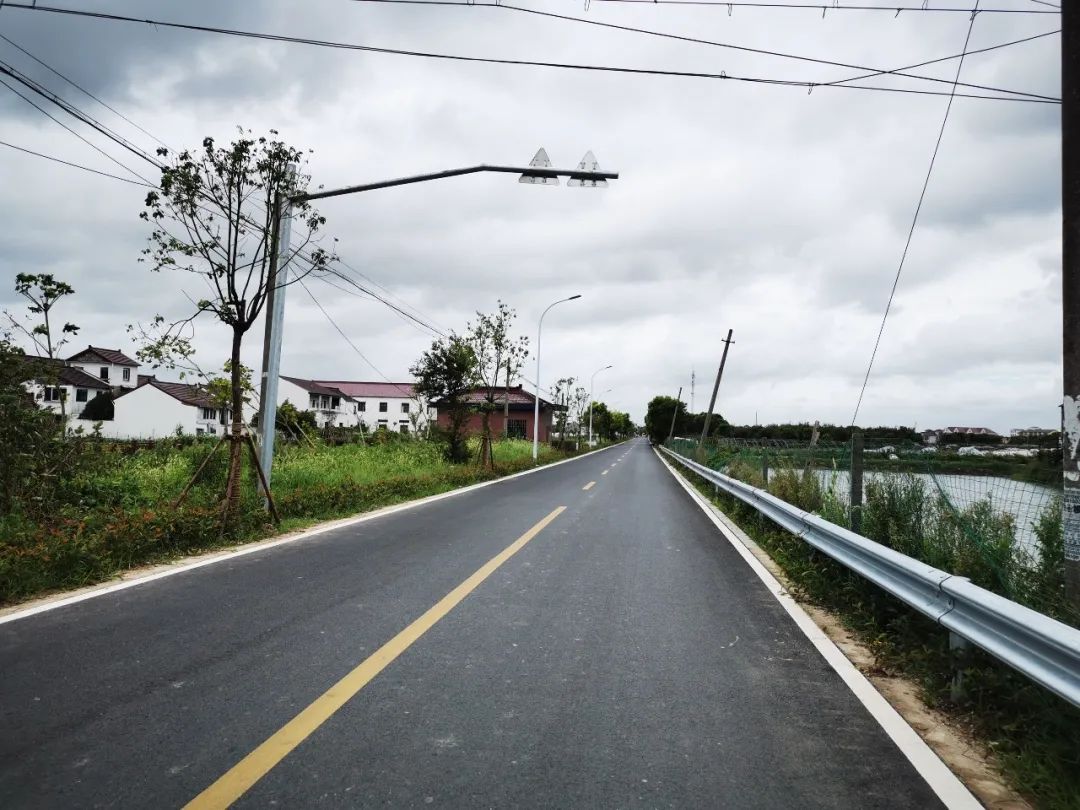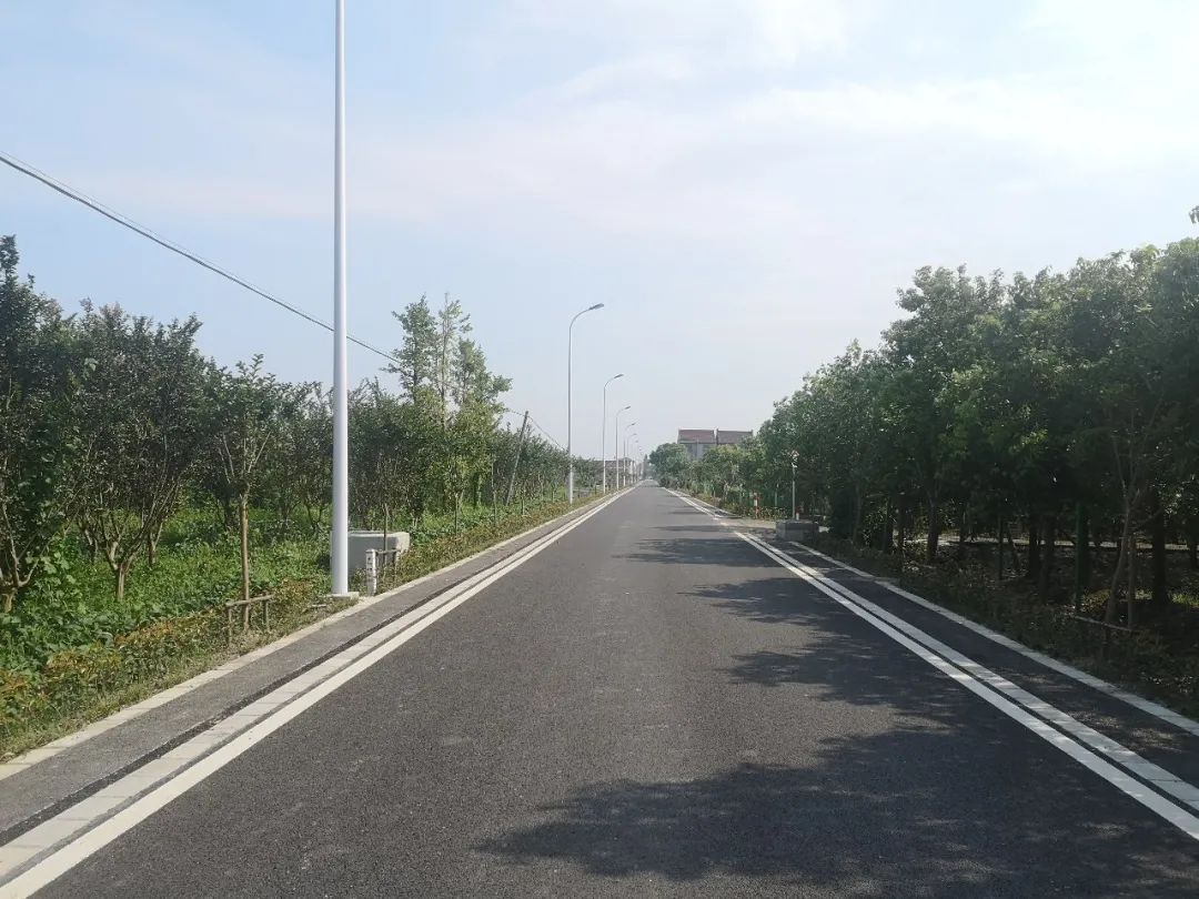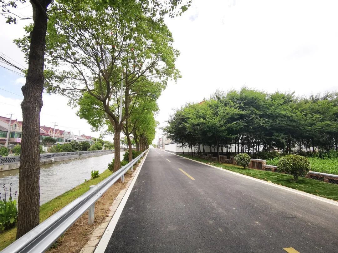 八一路西起沈陆中心路,东至环城东路,总长约2公里,路幅宽度6.5米,横跨六墩村和沈陆村。黑色沥青路面与“生态村组·和美宅基”的灰瓦白墙交相呼应,百余年的古石桥“青龙桥”散发着历史文化魅力,色彩艳丽的苗圃花海随风摇曳,农宅风貌尽显生机,古老文化焕发蓬勃生命力。