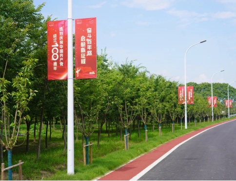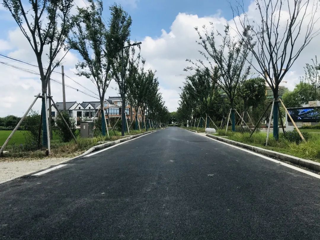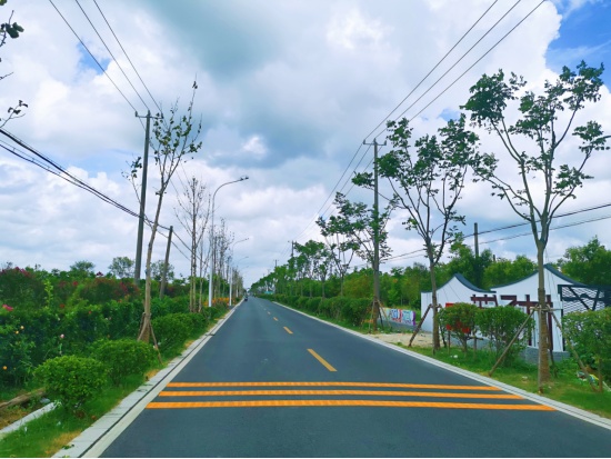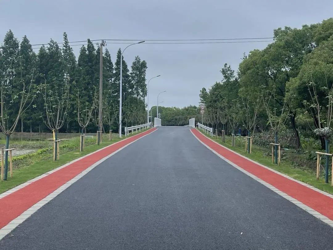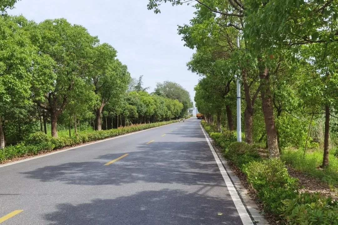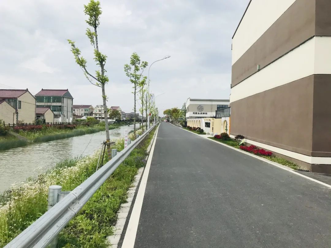 八一路西起沈陆中心路,东至环城东路,总长约2公里,路幅宽度6.5米,横跨六墩村和沈陆村。黑色沥青路面与“生态村组·和美宅基”的灰瓦白墙交相呼应,百余年的古石桥“青龙桥”散发着历史文化魅力,色彩艳丽的苗圃花海随风摇曳,农宅风貌尽显生机,古老文化焕发蓬勃生命力。