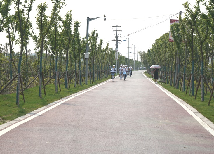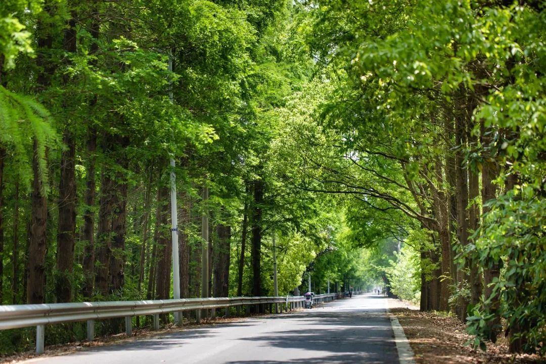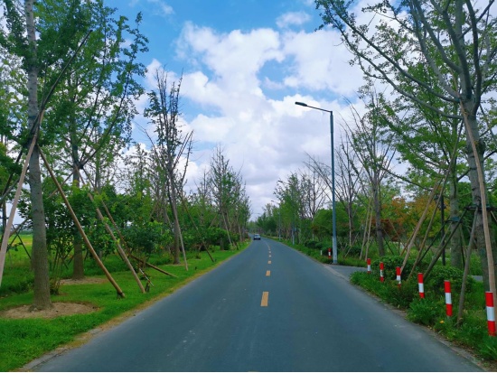 金海街道大庆河路(金齐路—航南公路),全长约1.5公里,路宽5米。"明月杉间照,绿水人家绕。枝上青杉吹又少,天涯何处无芳草。"很形象的描述了这条大庆河路。该道路路面平坦、整洁,两侧树木茂盛、挺拔,公路设施齐全、规范,是天然的绿色氧吧。