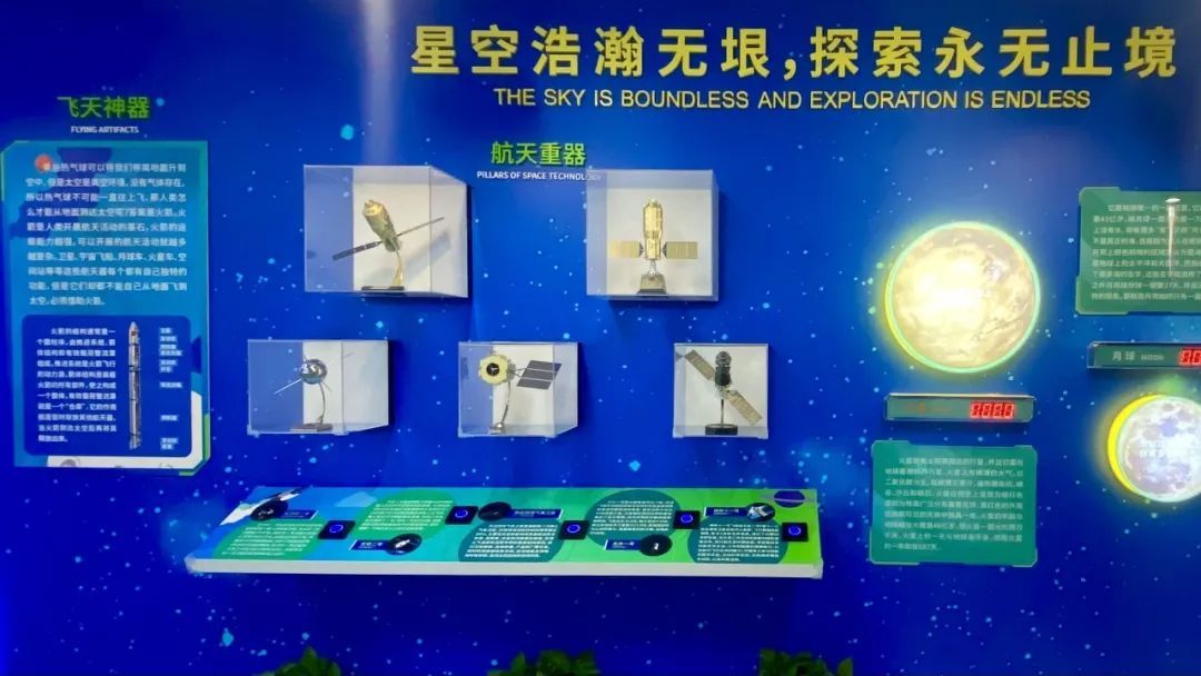 科学主题探索式阅读区旁边是科普长廊,这块区域以“航天科技”与“海洋科技”两块内容作为主题。通过模型展示、互动展项与数字化视觉展示等方式体现科技内容,诠释我国逐梦星空、瀚海扬波的科技成就,以及其背后的科学原理、技术应用。通过与大国重器的互动体验激发社会公众科学兴趣的同时,增强大家的民族自豪感和爱国情怀。