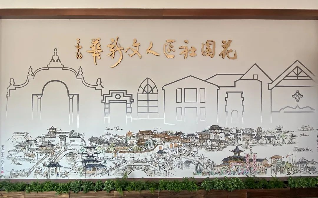 来到全新升级的新华路街道社区文化活动中心,首先映入眼帘的便是一幅以“花园社区人文新华”为题的长卷,长卷将古法华镇的景象和当下新华路街道的标志性建筑相结合,展现出了“人文新华”深厚的历史底蕴。