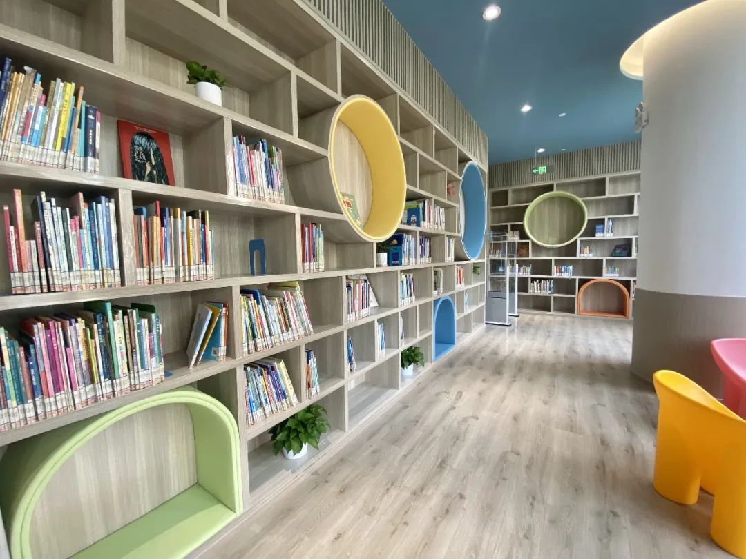 青少年图书馆里则摆放着适合青少年们阅读的书籍,还有休闲区域,整体布置充满童趣。