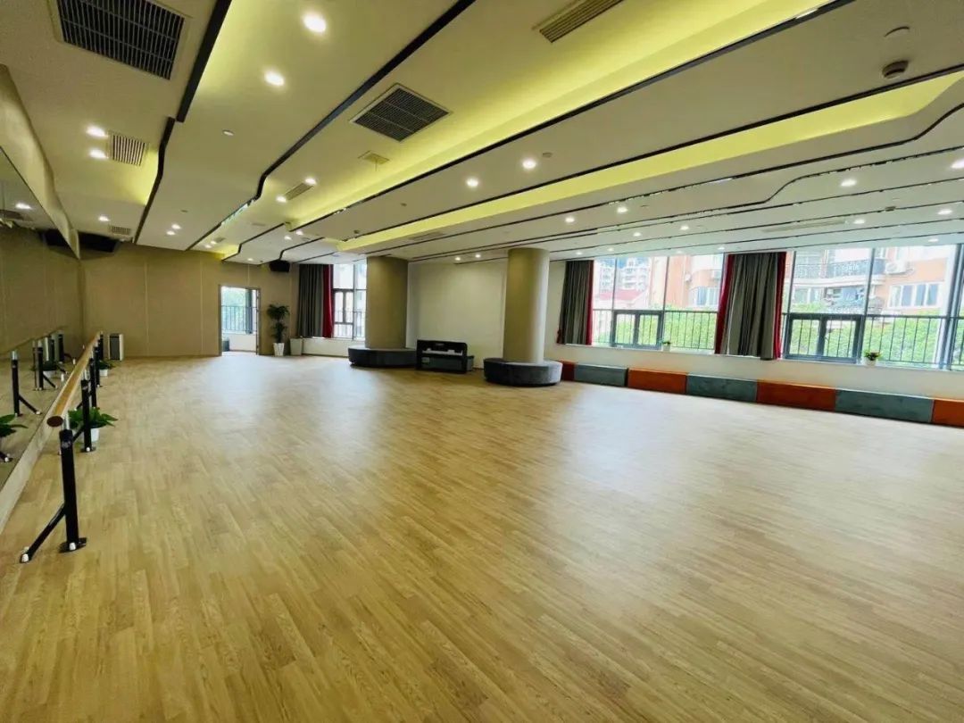 配备墙面镜、把杆、更衣室等舞蹈教学设施,可开展舞蹈、形体、健身、戏剧等的教学及排演活动,也是社区文化团队活动场地。
