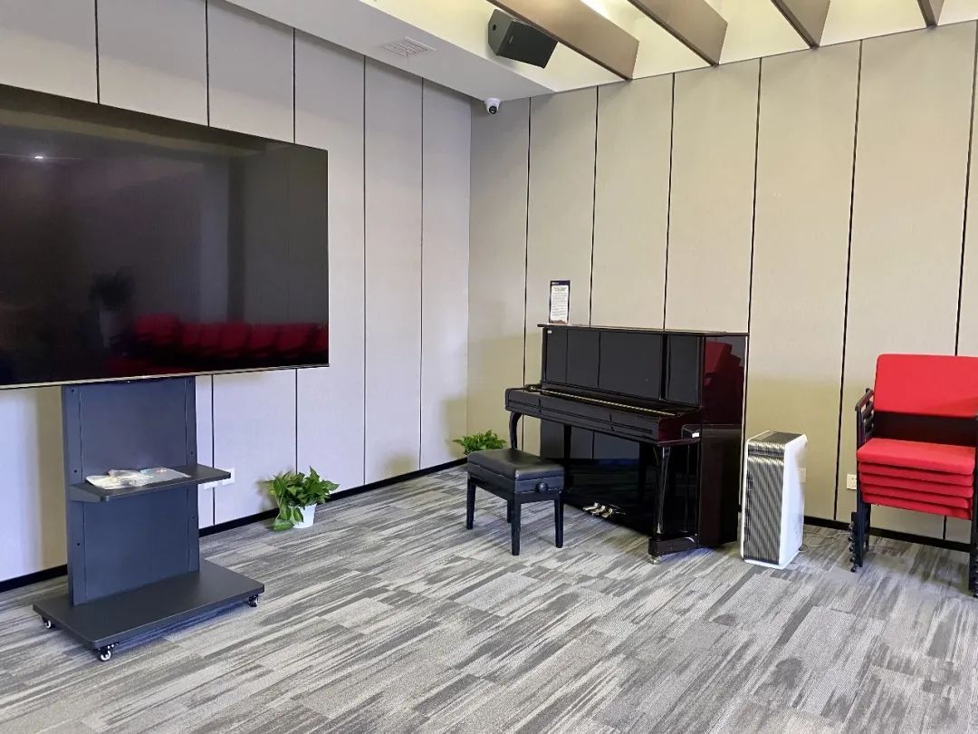 配备智能电视、音响以及钢琴,适合开展器乐、合唱、声乐类课程。除了用于教学,社区团队也可通过预约方式使用场地开展活动。