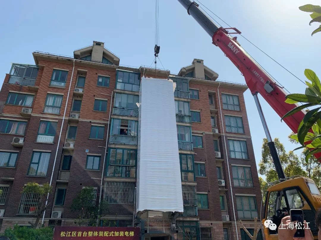 松江区首台整体装配式加装电梯 资料图