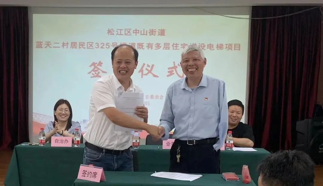 6月10日,蓝天二村居民区325号楼加装电梯签约仪式正式举行。这也是中山街道推进既有住宅小区加装电梯工作以来,第一部正式签约的电梯。根据居民们的初步意见,计划选用整体装配式电梯,后续事项正在逐步推进中。
