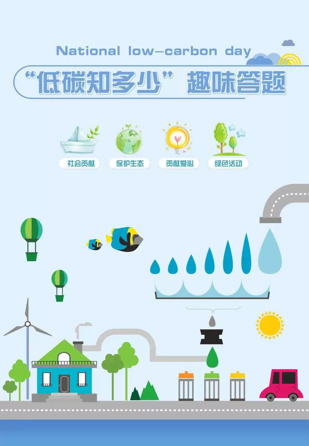 青浦区为宣传低碳理念,号召广大市民朋友们参与生态环境部宣传教育中心举办的全国少儿低碳书画比赛,转载了法制宣教科发布的三期趣味问答。