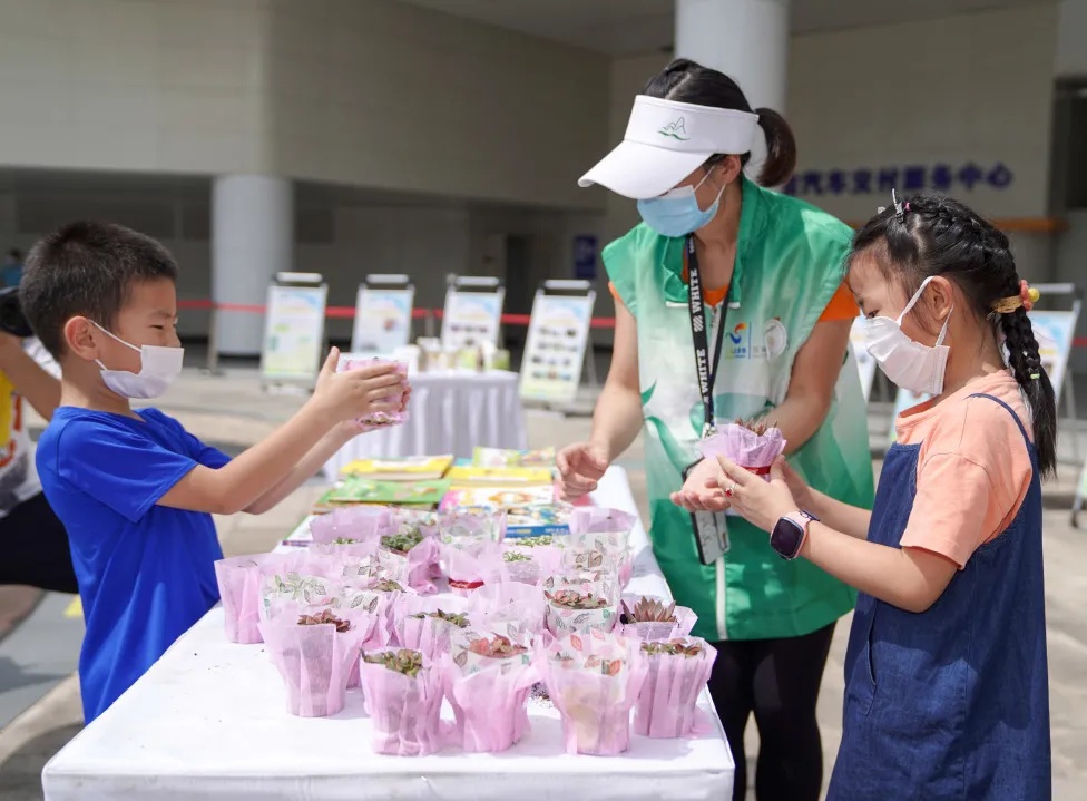 绿植领养、DIY帆布包制作、旧书回收等互动形式,也让不少家长带着小朋友共同参与到活动中,增强了活动的互动性。