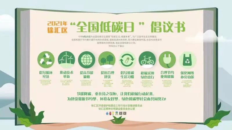 徐汇区在本次全国低碳日活动中,提出一份“全国低碳日”倡议书。通过八点呼吁,宣传生态文明建设,营造绿色生活氛围,它的诚意,你感受到了吗?