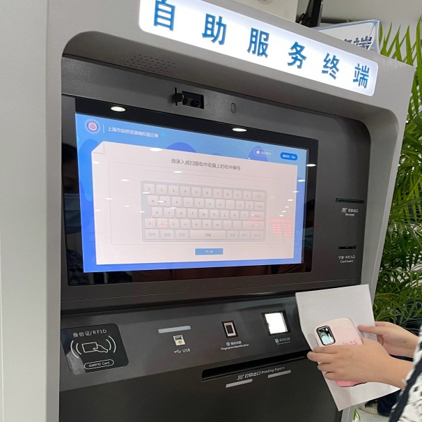 即日起,全市首台不动产自助打证终端在浦东新区不动产登记张杨路受理点的三楼受理大厅正式“上岗”,为群众提供不动产登记权证和证明自助打印服务,真正实现了随到随领!