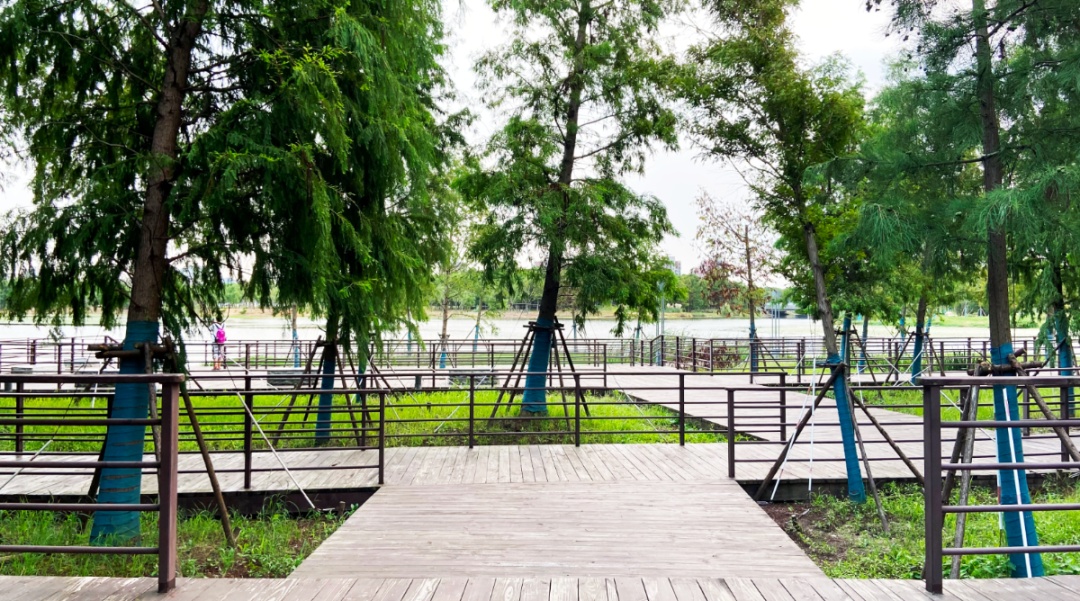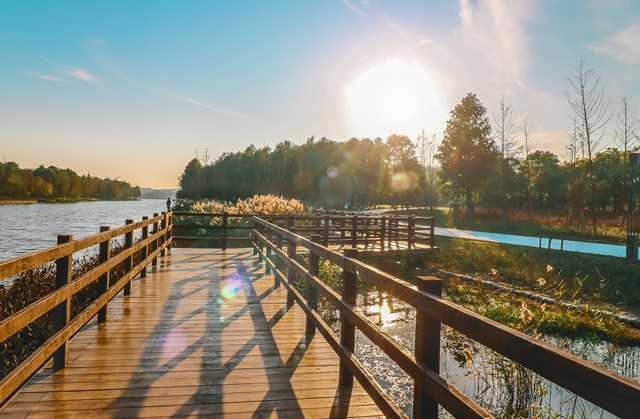 漫步密林中,驻足小轩或留步栈桥,聆听鸟语和蝉鸣,可谓是人在路上走,水在林中流,鱼在池中游,花在地上移。木质栈道引导游人穿行于密林和水流之间,石头汀步,步移景异,百里画廊,一步一景。