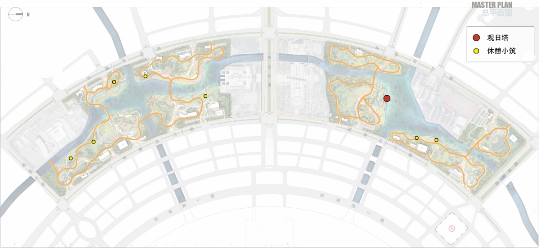 公园最神秘的一处小筑莫过于公园中央的“观日塔”了,作为目前公园最高的观景点,在各个片区都能远远看到,要是想登上塔楼俯瞰公园美景,可得沿着绿道“顺藤摸瓜”,历经九曲十八弯,就能来到高塔脚下啦~