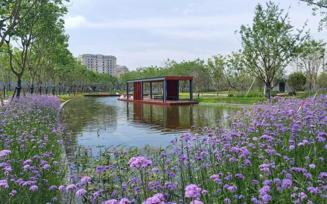 长风绿地开辟了三块特色功能区域。其中,文化教育区栽植丛生朴树、浙江楠、无患子等乔木,周边密林成为草坪的天然背景,结合月季园及以杜鹃为主题的线形花园打造景色宜人的功能空间;艺术休憩区为游人提供开阔的活动空间,并在儿童游乐区域大面积种植粉黛乱子草,营造粉色秋景的艺术效果;健康休闲区紧靠木渎港,通过种植花菖蒲、花叶芦竹等水生植物依序构成人行桥西侧的生态水景,层次、色彩丰富,形成一个有机、和谐、统一的组合体,丰富视觉感受,给人温馨舒适的体验。