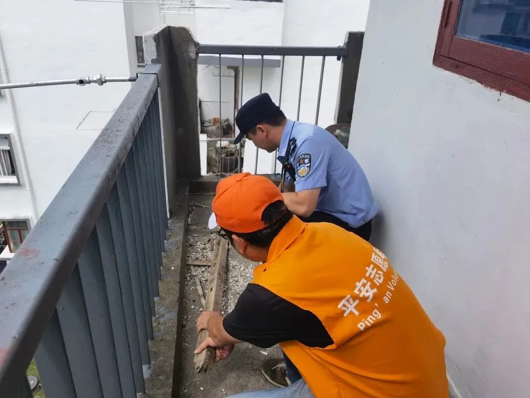 为应对上月出现的强台风“烟花”,各工作组在台风来临前做好严密部署。派出所、物业、平安志愿者等组成巡查力量,对空置房屋进行全面检查,将风险防范于未然,让业主们安心、放心。期间,他们疏通开放式外阳台出水管、加固或拆除外置晾衣架,消除几十处隐患,确保空置房屋平稳度过台风天气。