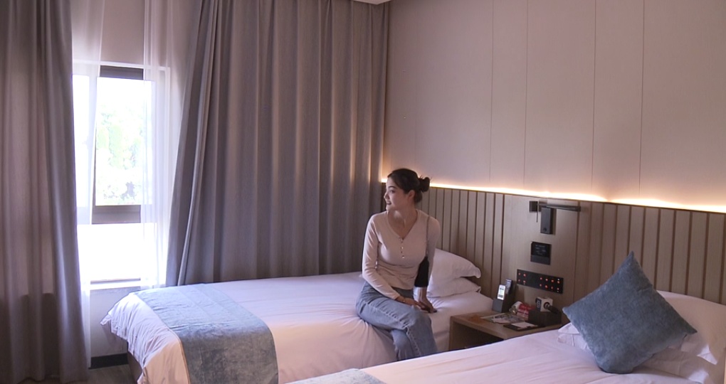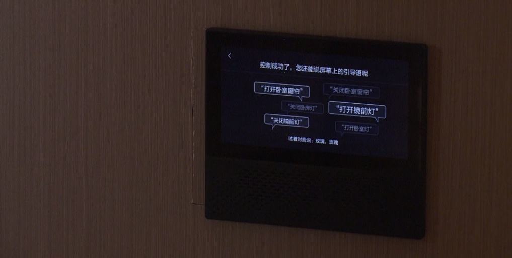 酒店客房内装有一个黑色的客房智控设备,住店客人在喊出正确的语音指令后就可以通过和它对话来实现用声音操控窗帘、灯具、电视、空调等设备。此外,客房智控系统还有直接呼叫前台、播放音乐等服务功能。