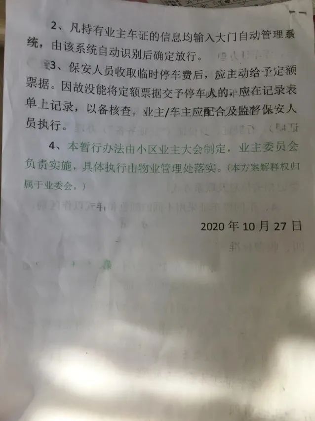 原来,根据小区新的机动车停放、管理办法: