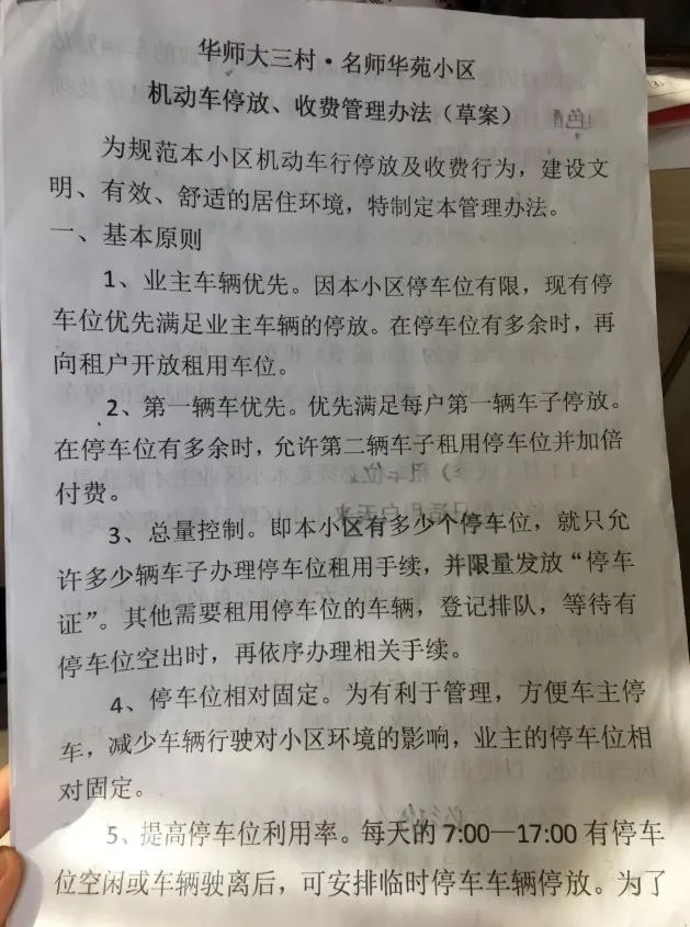 记者在小区“机动车停放、收费管理办法(草案)”看到:↓↓↓