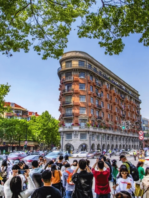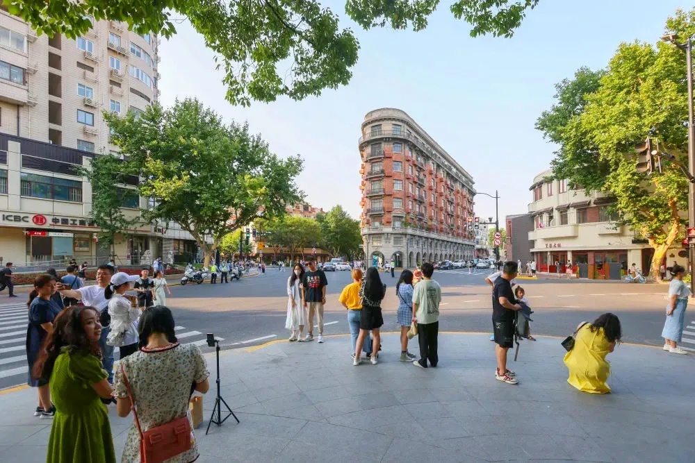 随着临街一层的书店、咖啡店、美食店等陆续开放,武康大楼吸引了一批又一批的游客前来打卡拍照。