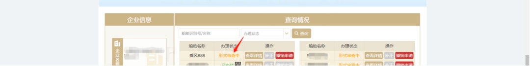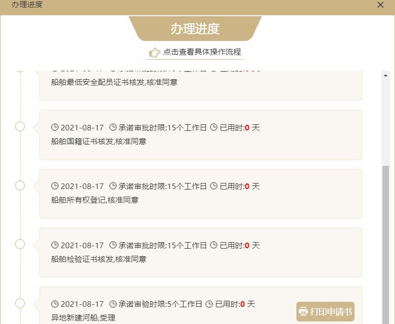 申请人可在“船舶开航一件事”主题页中,点击“办理状态”栏查询办理进度↓