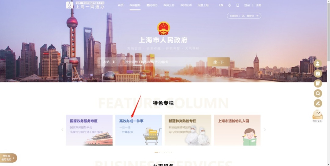 网址为:https://zwdt.sh.gov.cn/govPortals/index.do