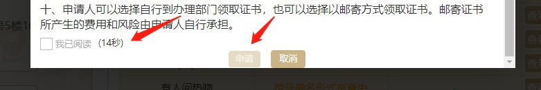 仔细阅读告知书,15秒后可勾选“我已阅读”,点击“申请”↓