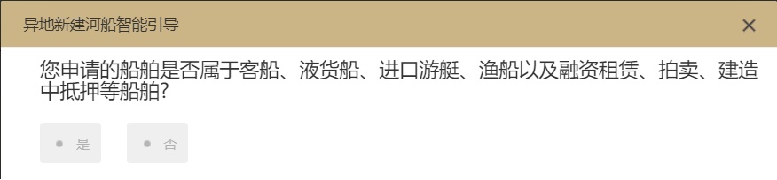 根据实际情况,回答智能引导问题,确认船舶是否符合“船舶开航一件事”适用范围↓