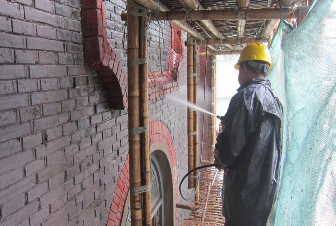 本着真实性、可逆性和可识别性的原则,原有建筑立面风貌得到了保护和修复。在修缮立面清水砖墙过程中,后期大修覆盖其上的仿石水泥涂料以最低强度被剥除,北立面中部塔楼的清水砖墙重见天日。
