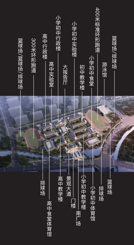 项目用地面积36651平方米,建筑面积约40600平方米,将新建两栋地上六层教学楼(小学部和中学部各一栋),三栋地上五层的教学辅助楼,一栋地上六层的行政办公楼,一栋地上两层地下一层的综合楼。办学规模为54班,其中小学30班,初中24班。