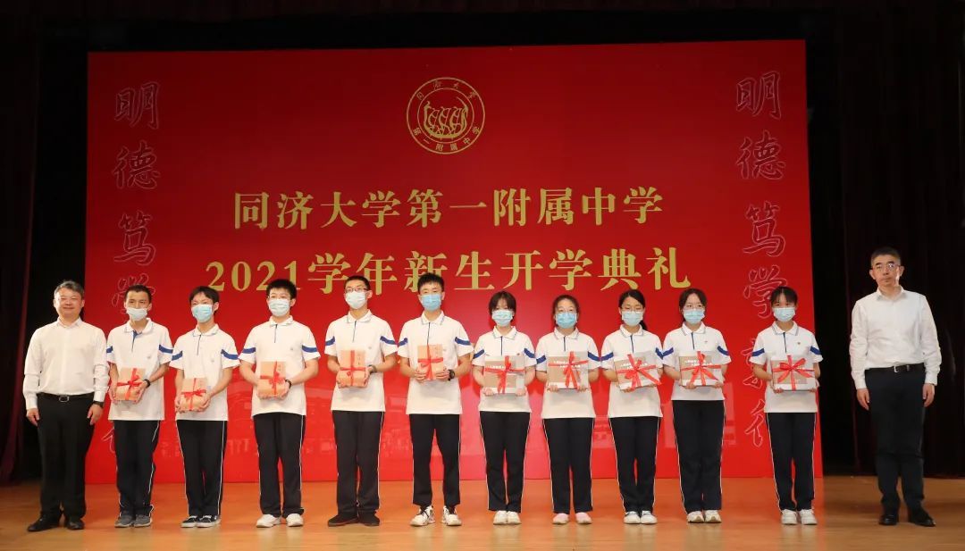 今天(9月1日)上午,同济大学第一附属中学2021学年新生开学典礼举行。同济大学校长、中国工程院院士陈杰,杨浦区委书记谢坚钢,副区长王浩,同济大学校长助理、校长办公室主任刘润等,与高一新生、教师代表、家长代表共同参加开学典礼。