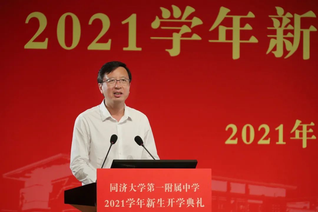 他指出,过去一年是同济一附中发展的关键年,区校合作共建“同济大学杨浦基础教育集团”的内涵不断深化,一附中在各项工作中实现新突破,成为首批“普通高中新课程新教材实施国家级示范校”“上海市现代信息技术运用标杆学校”,区域影响力持续扩大提升。在区校教育合作的全新战略背景下,同济大学将进一步加大对同济一附中的投入力度,从管理团队、课程建设、资源共享、思政一体化等各方面给予全力支持,与杨浦区共同推动和支持学校快速发展,共同打造一所上海市高水平一流大学附属中学。希望全体新生涵养家国情怀、勇担青春使命,坚定理想信念、矢志拼搏奋斗,拥抱时代发展、绽放青春芳华,尽快成长为社会主义事业的建设者和接班人。希望全体师生勤奋努力、不负韶华、逐梦前行,共同开创美好未来。