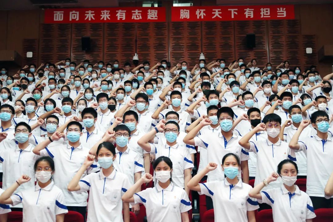 全体高一新生庄严宣誓,表达同舟共济的决心和不负韶华的信心。