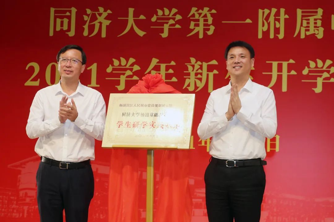 陈杰、谢坚钢为“同济大学杨浦基础教育集团学生研学实践基地”揭牌。