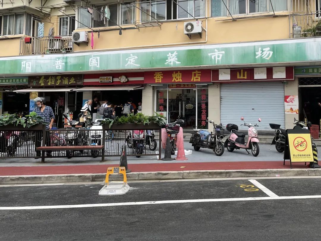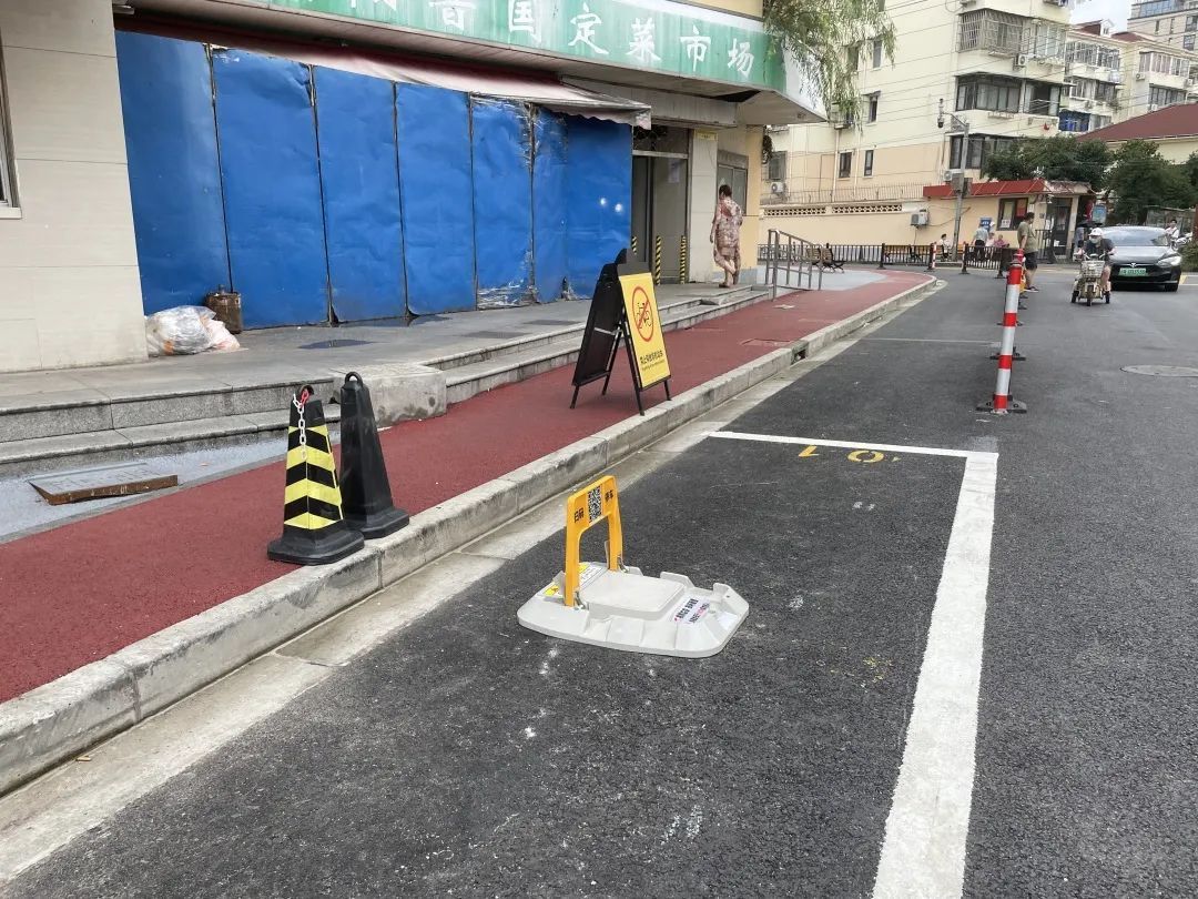 并且针对国定菜市场的特殊情况,街道还设置了智能化的停车位,方便菜场工作人员和消费者。